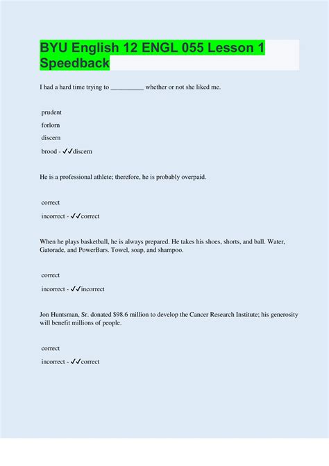 Read Online Byu English Grade 12 Speedback Answers Doc